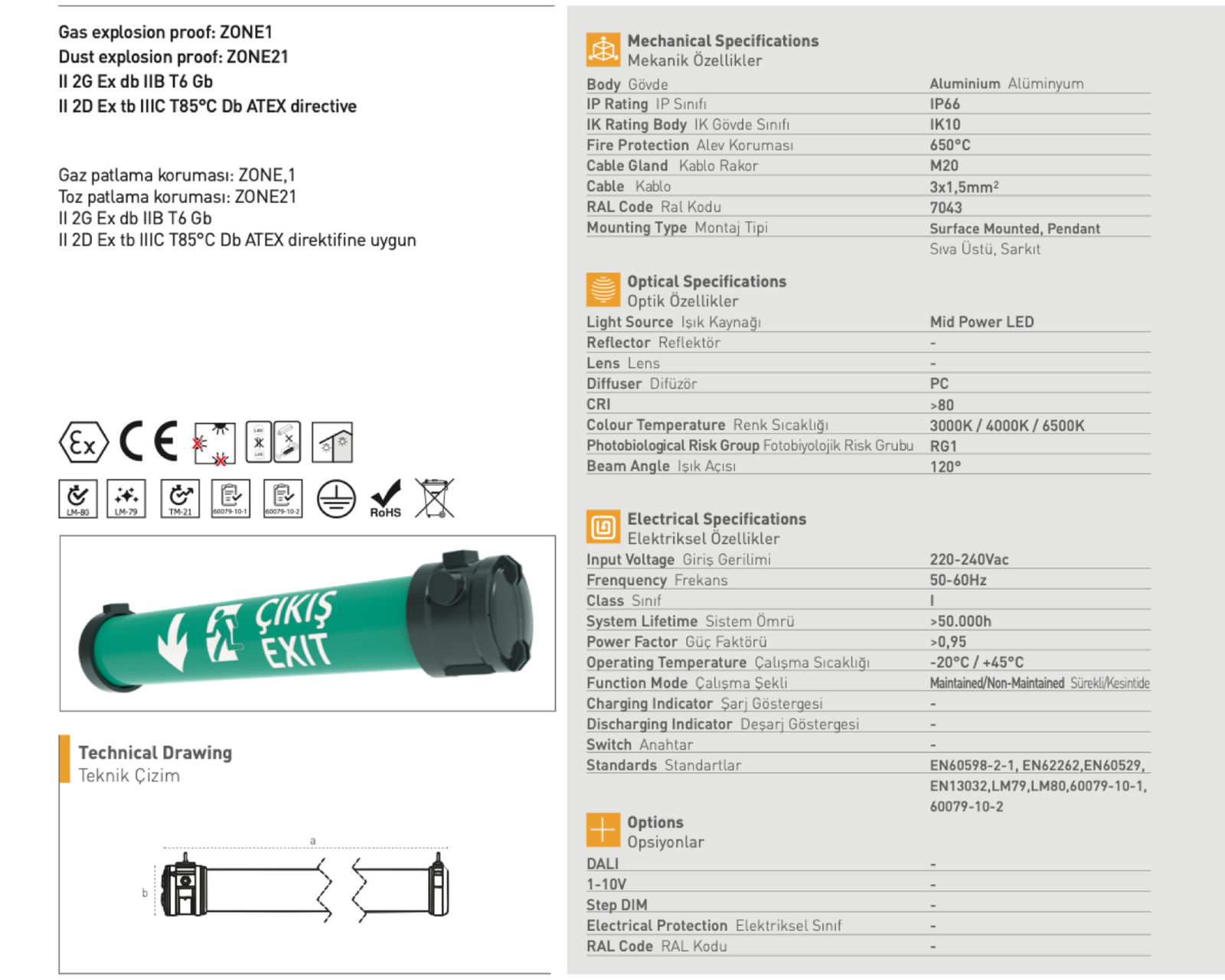 II 2D Ex tb IIIC T85°C Db ATEX direktifine uygundur.
